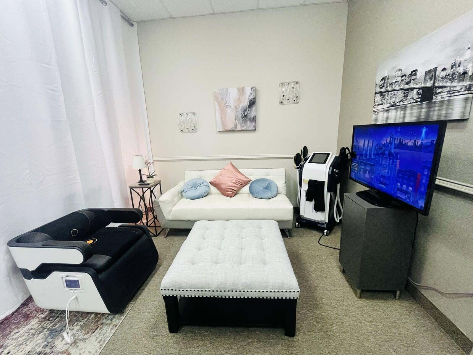 The soft tones, cozy seating, and inviting décor are designed to help you unwind, while our advanced technology stands ready to provide state-of-the-art aesthetic treatments.