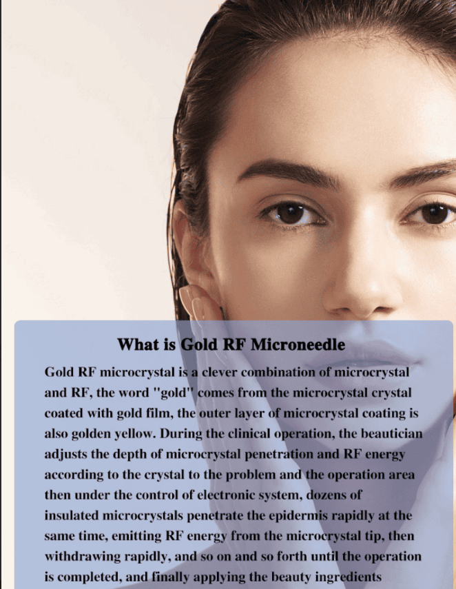 Discover the power of GlamGold RF Microneedling with multiple advanced probes and intelligent skin technologies designed to target a wide range of skin concerns. This innovative treatment combines vacuum suction, microneedle precision, electroporation, and high-frequency heat to deliver deep dermal rejuvenation with minimal downtime. Gold RF Microneedling works by creating controlled micro-injuries in the skin while simultaneously delivering radiofrequency (RF) energy into the deeper layers. This dual action stimulates collagen and elastin production, tightens pores, and enhances the absorption of active skincare ingredients. The gold-coated microneedles ensure better conductivity and reduced irritation, making the procedure both effective and gentle. With customizable probes tailored for different areas of the face and body, this system effectively addresses fine lines, wrinkles, acne scars, stretch marks, sagging skin, and more. Whether you're aiming for brighter skin, tighter contours, or overall texture refinement, this cutting-edge treatment offers visible, long-lasting results for all skin types.